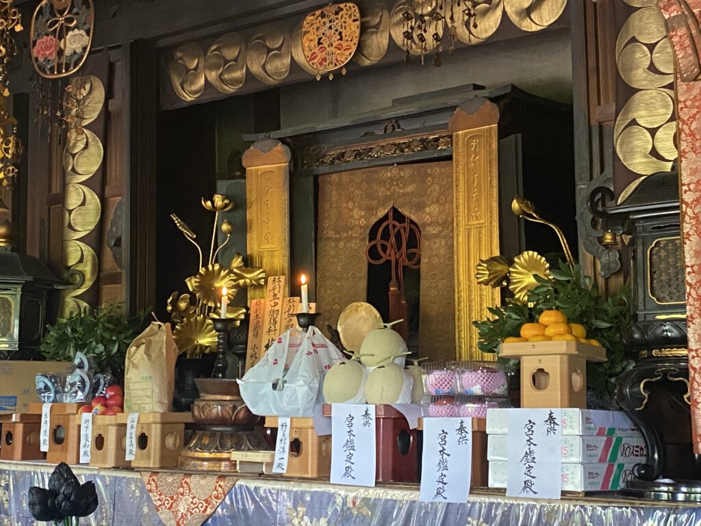 Furthermore, there are many different styles of gorinto or “stone pagodas” that are located on the temple grounds. Their shape represents the five elements (earth, water, fire, wind, and space), and are very commonly displayed in Buddhist temples and cemeteries. Surrounding the temple, the gardens give the grounds a natural aesthetic, with a running stream, trees, plants, small animals, all of which creates a calming oasis for many to visit.