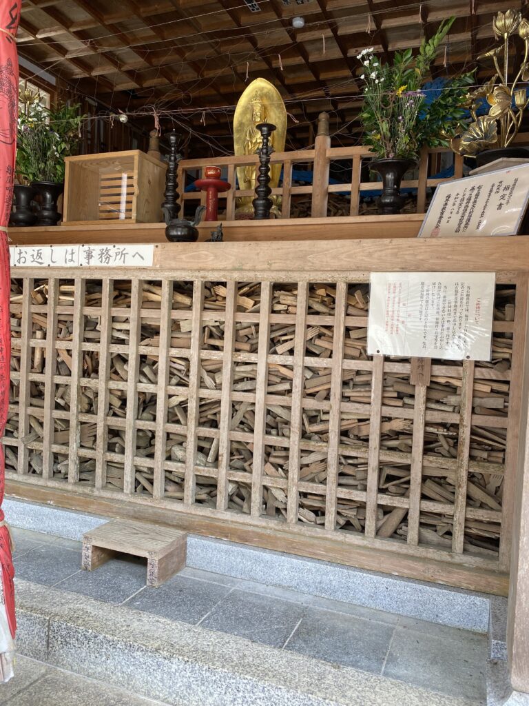 This pilgrimage site has been known to be a place for visitors to pray for relief in regard to their disabilities or problems that they have with their limbs or body parts. After their arrival, visitors will pick up a wooden effigy or omamori of the body part they are praying for and take it home. The wooden omamori provided at Mikataishi takes on many forms, including arms, legs, torsos, breasts, etc. After the visitor’s disability or problem is cured, they then bring the omamori back to Mikataishi and leave it behind the outdoor pagoda on a pile of other returned omamori. As you can see in the images below, the pagoda has a massive pile of omamori returned by those who have claimed to be cured since the 19th century.