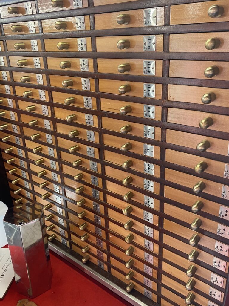 Within the arcades on the temple grounds, hundreds of shopping stalls can be found. In the courtyard, there are multiple small stalls in which visitors can receive a written fortune. Each visitor may give a donation of 100 yen and can ask the oracle for guidance on their questions on topics such as health, love, fortune and more. They then choose a drawer to open out of a hundred various drawers and will receive their answer.