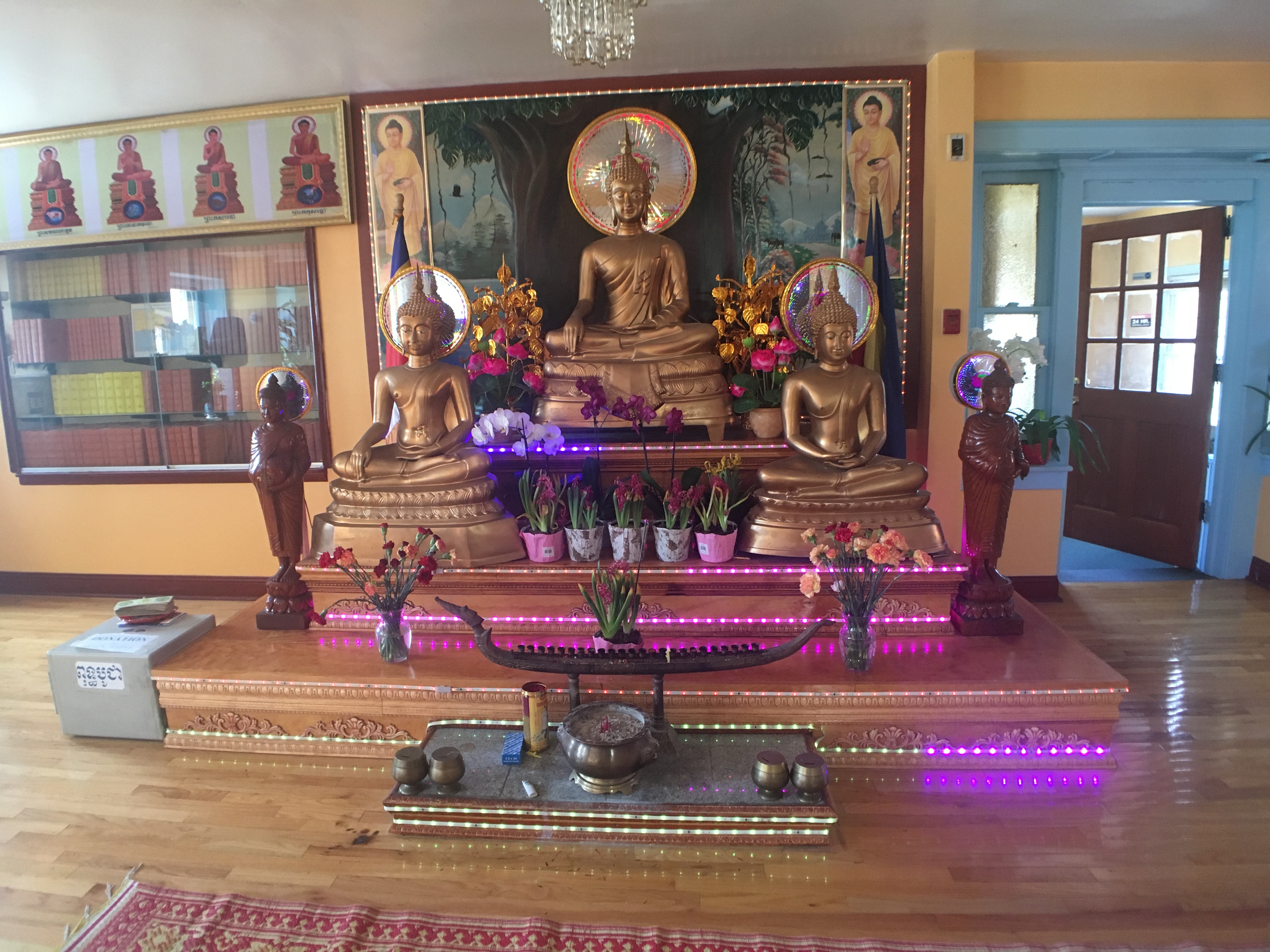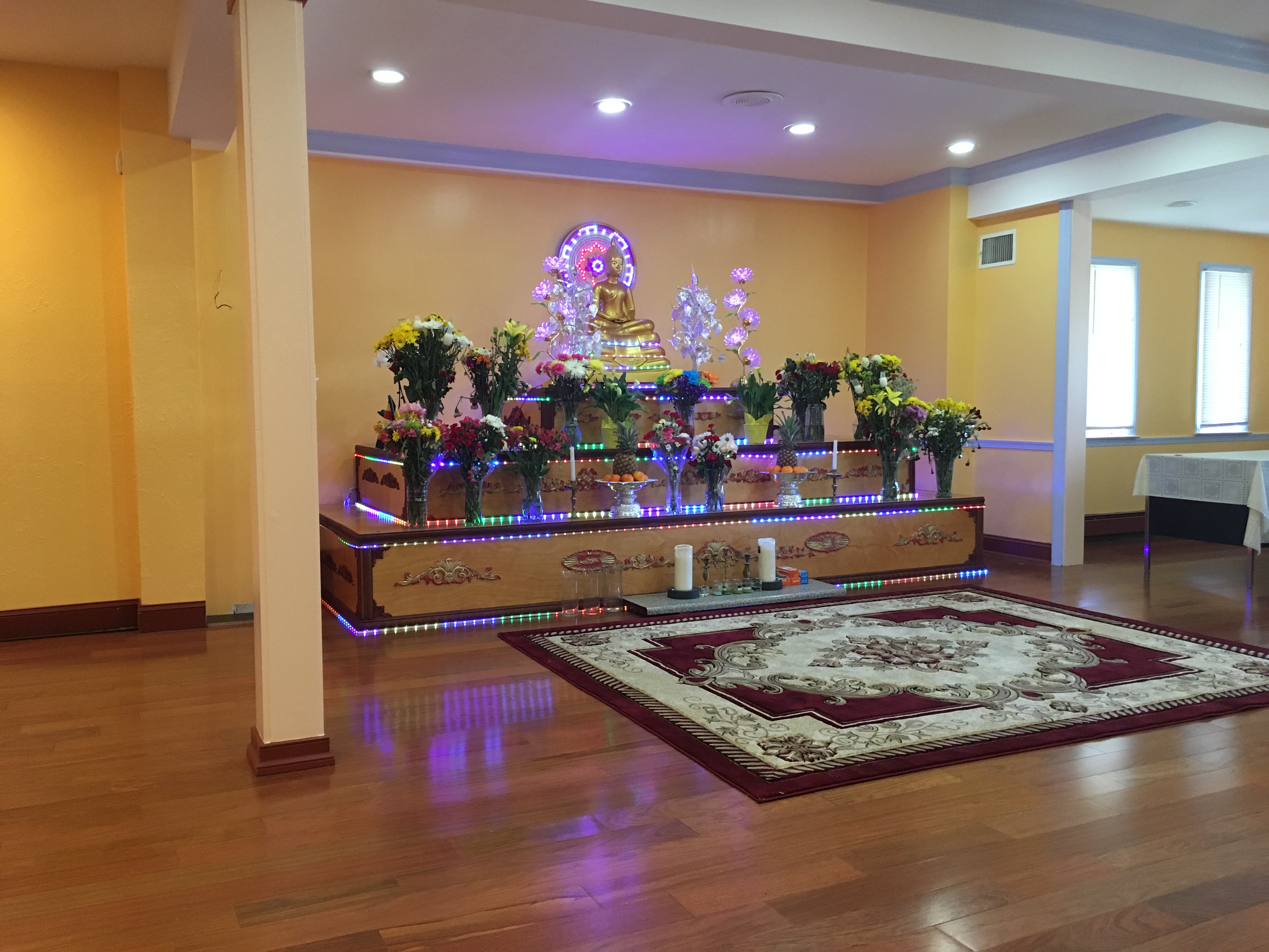 Open to the public daily 9-4. Established in 1993, named after Rising Sun Ave., on which it is located. Affiliated with other temples of same name in Cambodia. Three monks currently in residence. Interviewees stressed the role of mindfulness cultivated through meditation for maintaining physical health. The practice of a vegetarian diet, temperance, monogamy, and maintaining the five precepts were also mentioned, as were spreading compassion and gratitude. Bathhouses are utilized to heal, as is the undertaking of a period of abstinence from food and shelter while receiving prayers and blessings from monks. Holy water blessed by monks is also used to purify or heal the body.Soryarangsey Khmer Buddhist Temple